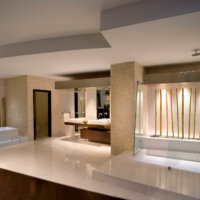 The 7924 sq. ft. structure is elevated on 12’ concrete piles, formally allowing street level transparency towards the shoreline and functionally allocating the building parking facility. The open colonnade holds the second floor exhibition gallery and sales offices.