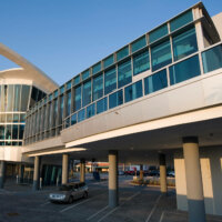 The east façade continuous curtain wall, allows open views towards the shoreline landscape.