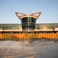 The West façade becomes a parapet, voiding interior functionality views from urban adjacencies. It is formally conceived by longitudinal concrete wings; vertically interpenetrated by a central atrium, which encloses the building core.